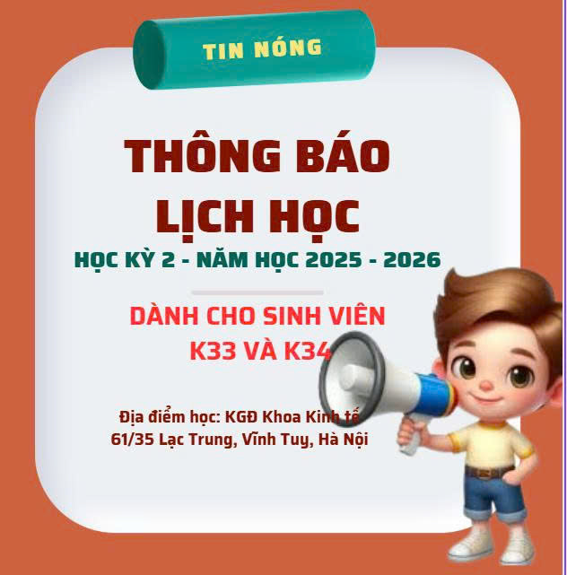 [Hệ chính quy] Kế hoạch học tập học kỳ 2 năm học 2025-2026 (Dành cho sinh viên K33 và K34)