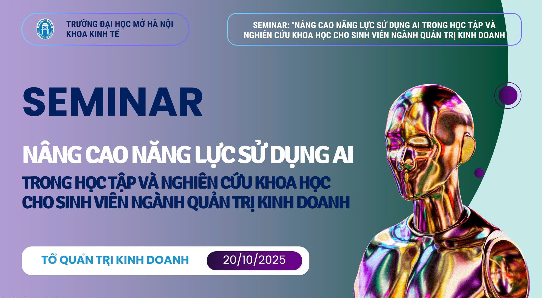 Khoa Kinh tế tổ chức Seminar “Nâng cao năng lực sử dụng AI trong học tập và nghiên cứu khoa học cho sinh viên ngành Quản trị kinh doanh”