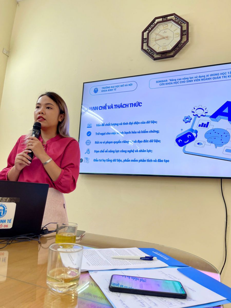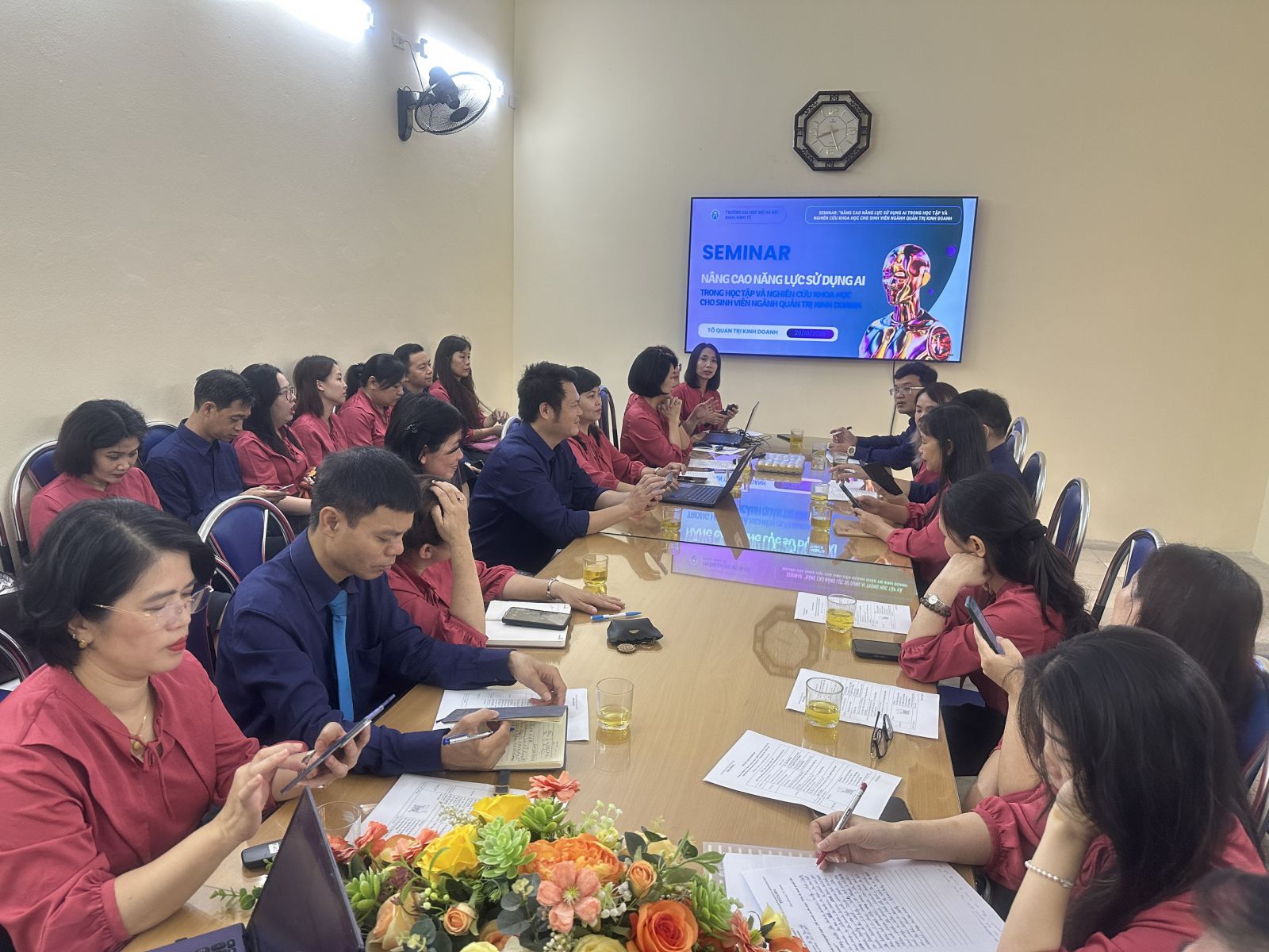 Sáng ngày 20/10/2025, tại Khu giảng đường Khoa Kinh tế - 193 Vĩnh Hưng, Vĩnh Hưng, Hà Nội, Khoa Kinh tế - Trường Đại học Mở Hà Nội tổ chức Seminar với chủ đề “Nâng cao năng lực sử dụng AI trong học tập và nghiên cứu khoa học cho sinh viên ngành Quản trị kinh doanh”.