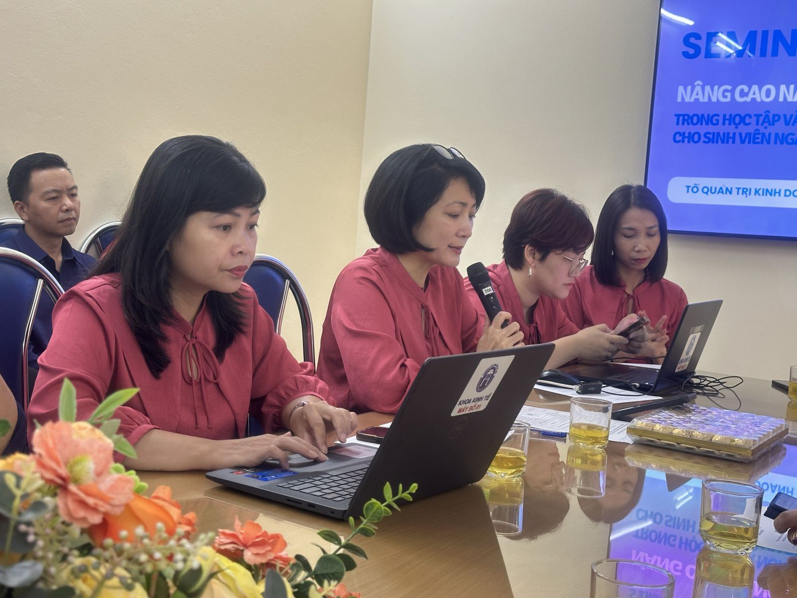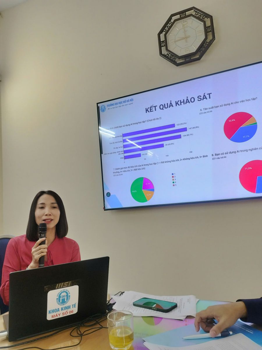 Tiếp đó, TS. Nguyễn Thị Thu Hường - Phó Bí thư Chi bộ, Phó Trưởng Khoa Kinh tế chia sẻ: “Seminar là cơ hội để sinh viên tiếp cận công nghệ hiện đại, hiểu đúng và sử dụng AI một cách thông minh, có trách nhiệm. Khoa Kinh tế sẽ tiếp tục tổ chức nhiều hoạt động học thuật ý nghĩa nhằm hỗ trợ sinh viên phát triển toàn diện kỹ năng nghề nghiệp trong thời đại số.”