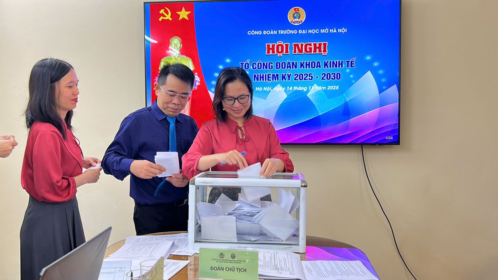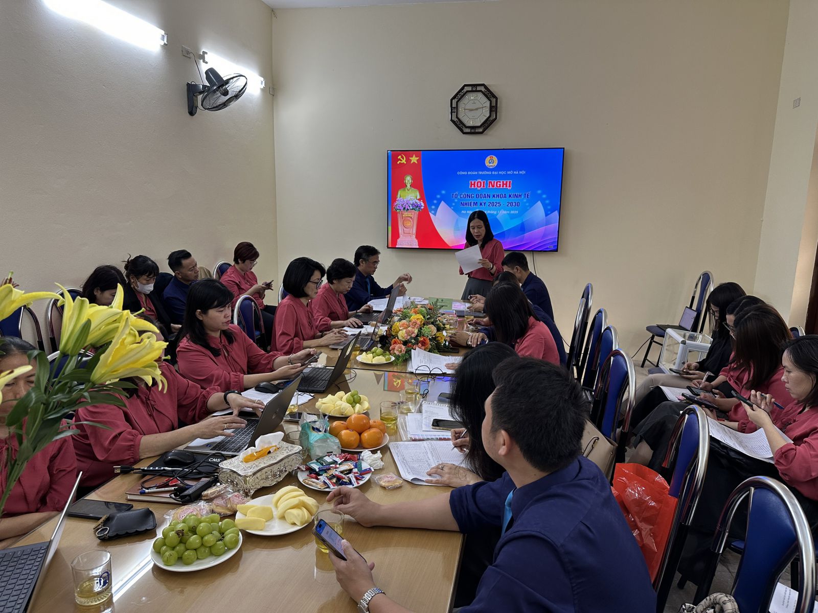 Ngày 14/11/2025, tại KGĐ Khoa Kinh tế - Trường Đại học Mở Hà Nội, Tổ Công đoàn Khoa Kinh tế đã long trọng tổ chức Hội nghị Tổ Công đoàn Khoa Kinh tế nhiệm kỳ 2025 – 2030 với sự tham dự đầy đủ của toàn thể đoàn viên công đoàn. Hội nghị được tổ chức nhằm tổng kết hoạt động nhiệm kỳ 2022 – 2025 và bầu Tổ trưởng và tổ phó Công đoàn cho nhiệm kỳ mới.