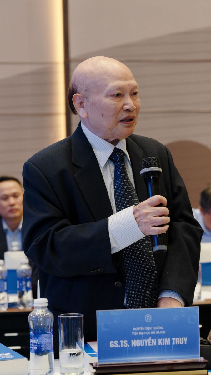 Phần thảo luận của hội thảo diễn ra sôi nổi dưới sự điều hành của TS. Tô Hồng Nam – Phó Cục trưởng Cục Khoa học, Công nghệ và Thông tin Bộ Giáo dục và Đào tạo , PGS.TS Nguyễn Thị Nhung – Hiệu trưởng Nhà trường và PGS.TS Dương Thăng Long – Phó Hiệu trưởng Nhà trường. Các đại biểu trao đổi về thực trạng chuyển đổi số trong giáo dục, các giải pháp thúc đẩy học tập suốt đời thông qua nền tảng mở, học liệu số, AI hỗ trợ học tập và đào tạo theo nhu cầu thực tế.