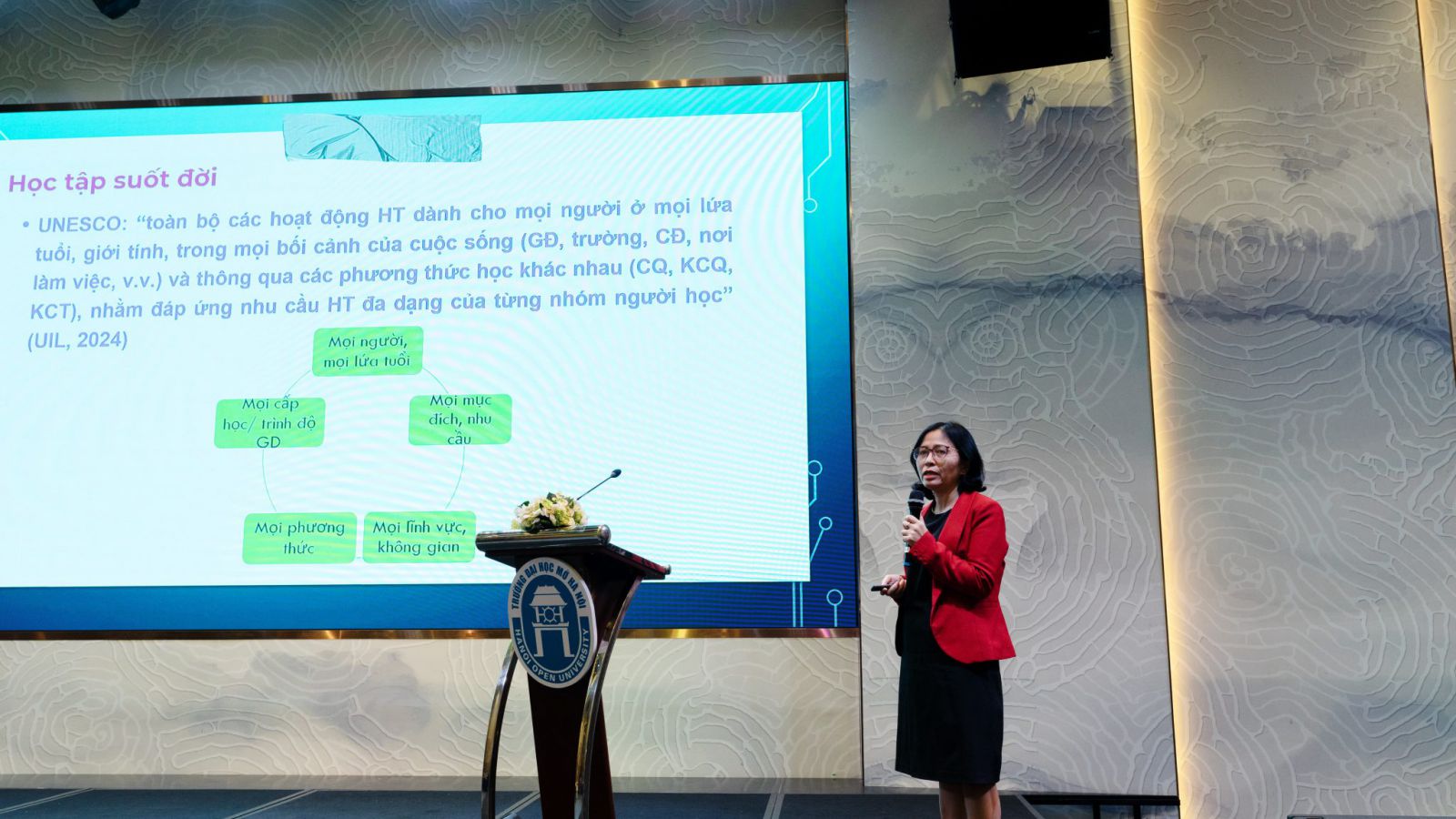 Ngày 30 tháng 10 năm 2025, tại Quảng Ninh, Trường Đại học Mở Hà Nội long trọng tổ chức Hội thảo Quốc gia với chủ đề “Xã hội học tập số – Động lực phát triển bền vững”. Sự kiện quy tụ gần 200 các nhà khoa học, nhà quản lý, chuyên gia giáo dục cùng đại diện các cơ sở đào tạo, trung tâm giáo dục thường xuyên, tổ chức xã hội, nghề nghiệp trên cả nước nhằm trao đổi, chia sẻ các mô hình, chính sách và giải pháp xây dựng xã hội học tập trong thời đại chuyển đổi số.